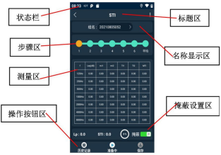 點擊“STI”進入STI界面,界面顯示如圖6所示。步驟區顯示:一個完整的STI測量需進行6次測量,根據6次測量的STI計算出平均STI。